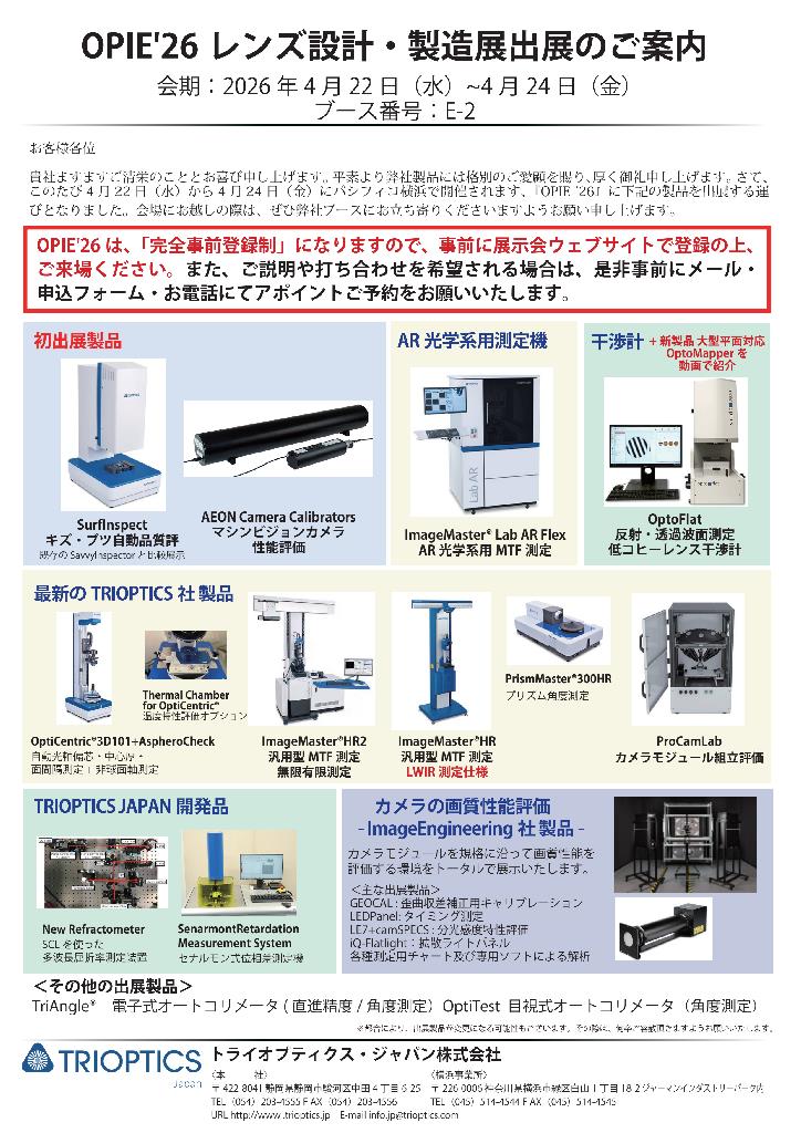 OPIE'26 レンズ設計製造展 出展のご案内