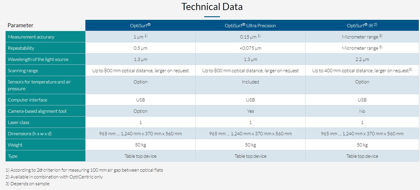 測定精度 <1μm(OptiSurf) <0.15μm(OptiSurf UltraPrecision)