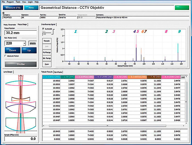 OptiSurfは、組レンズ内のレンズ個々の中心厚及びレンズ間の空気間隔を低コヒーレンス干渉計計測原理を用いて、非接触で測定します。