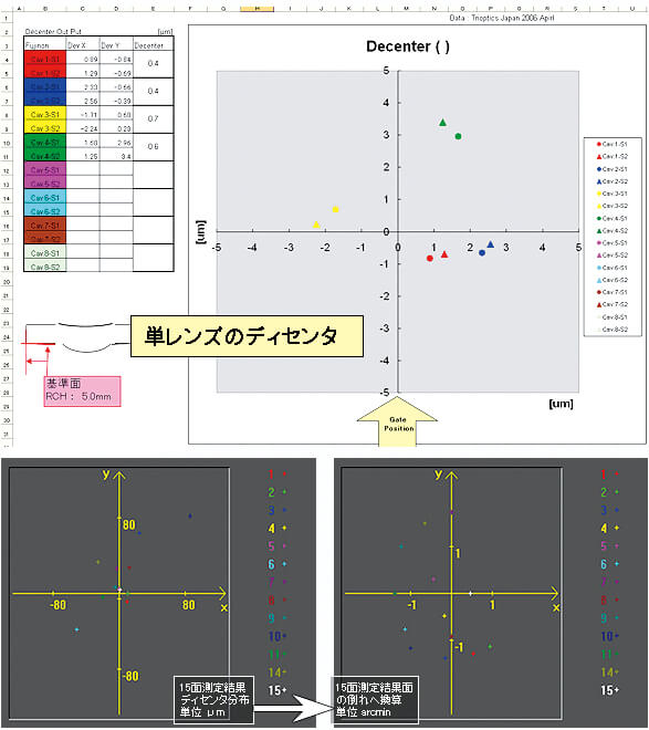 単レンズ - 透過、反射偏芯、成形レンズのディセンタ、金型コアの偏芯、ウェッジなど。
