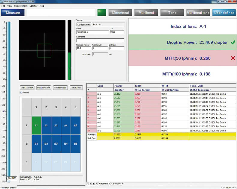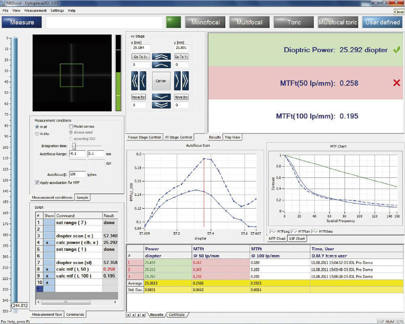 ・ISO 11979 Intraocular Lens Testing・オートフォーカス、リアルタイム表示・スクリプトツール Diopter, MTF, 結合効率・モデルアイ シフト&チルト・Multi Focus, Diopter Pos/Nega対応