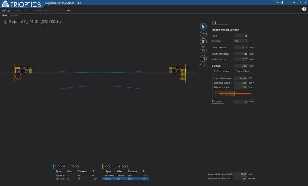 光軸調芯しながらセルレンズが加工されるため、レンズの光軸とセルの軸が同軸になります。