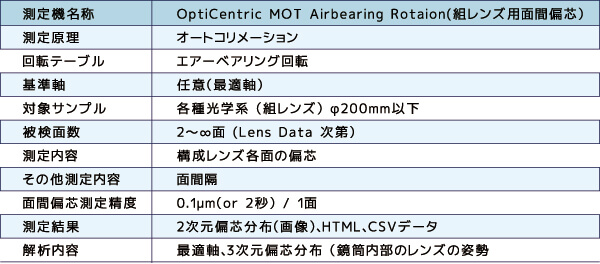 偏芯・中心厚・面間隔の測定サービスはディセンタ、反射偏芯、透過偏芯、曲率半径、光軸の調芯・接合・組立・測定評価、中心厚、空気間隔などを計測します。